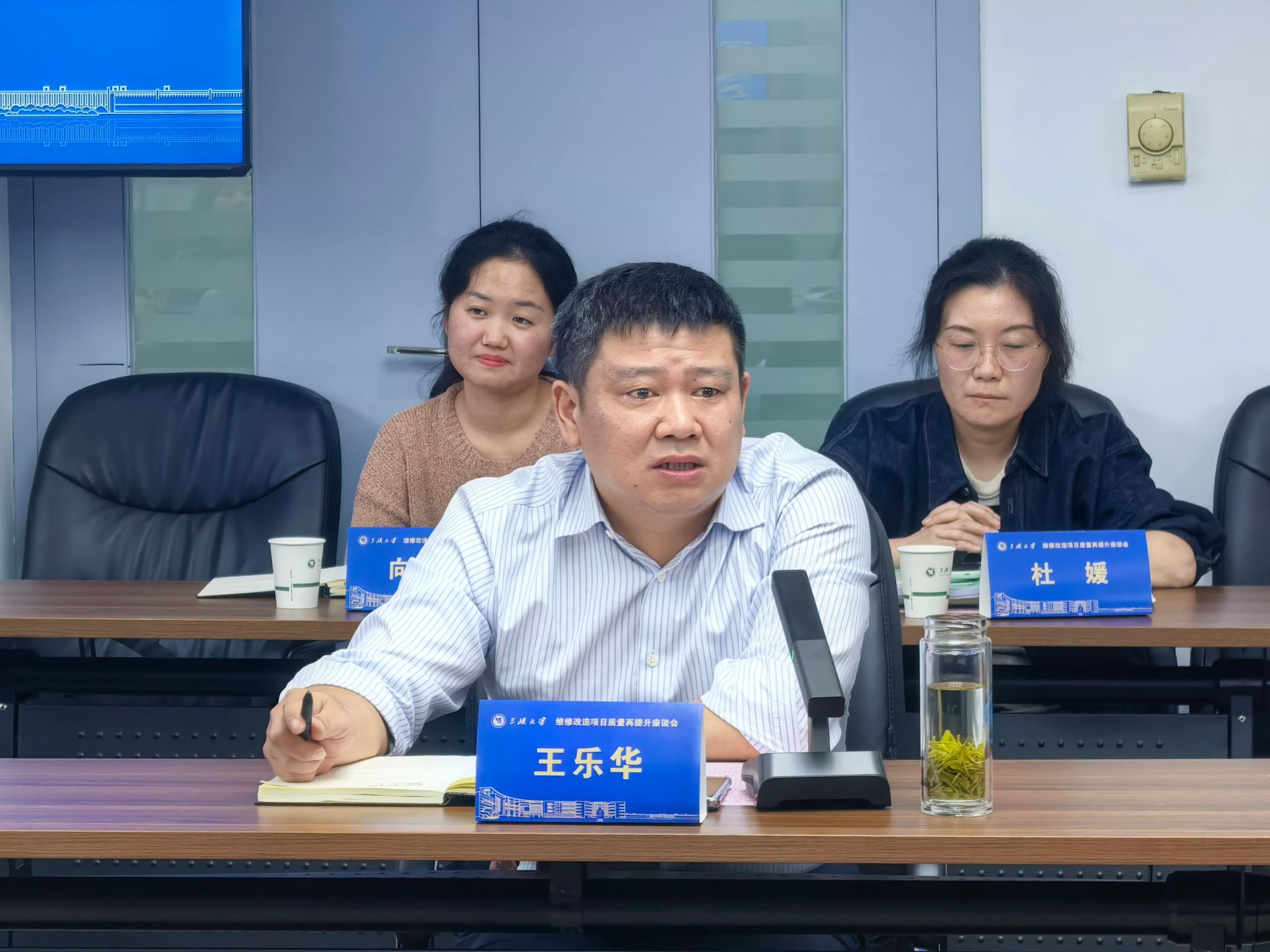 (通讯员 雷勇/文 简飞弘/图)近日,学校组织召开“维修改造项目质量再提升”座谈会。校党委常委、副校长王乐华出席会议并讲话。